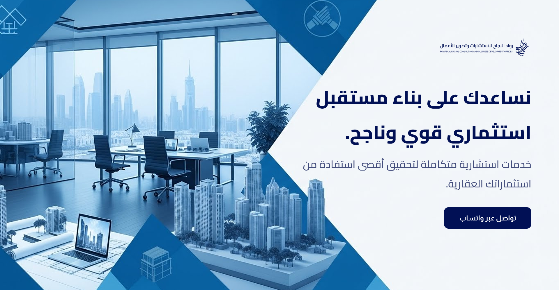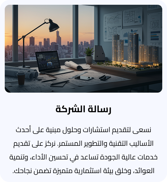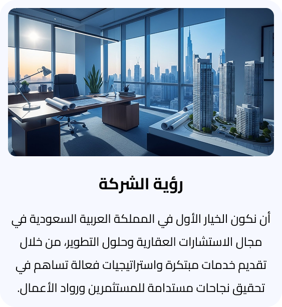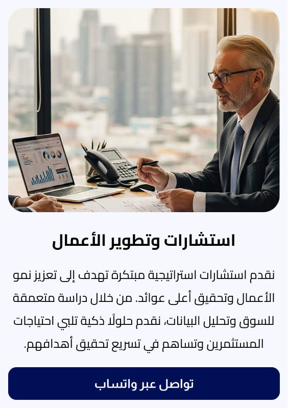نحن في رواد النجاح متخصصون في تقديم استشارات وحلول التطوير العقاري الرائدة على مستوى المملكة العربية السعودية. من خلال فريق من الخبراء الاستشاريين المؤهلين، نقدم حلولًا مبتكرة تهدف إلى تحقيق العوائد الأمثل لعملائنا. نسعى جاهدين لأن نكون الشريك الموثوق لرواد الأعمال والمستثمرين، ملتزمين بتوفير حلول ذكية تساعد في توفير الوقت والمال وتحقيق النجاح المستدام.
